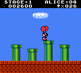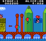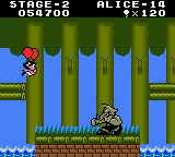Alice’s sprite looks a bit weird, but I think that’s just an aftermath of this game actually being an updated re-release of an early Game Boy title. Just like what happened to Link’s Awakening and other games, this one got updated to have color, but it was only released in Japan, while the original apparently wasn’t.